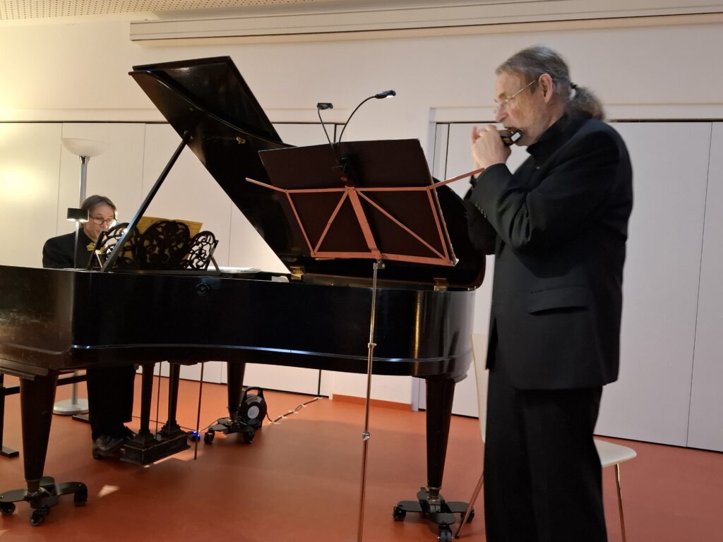 Konzert-Premiere im Bürgerhüs, veranstaltet von TonAb!. Martin Klingler (Flügel) und Ulrich Müller-Froß (Mundharmonika) spielten Werke von Poulenc, Lewis, Brahms, Bartok, Jakob und Hui Cheung Wai.