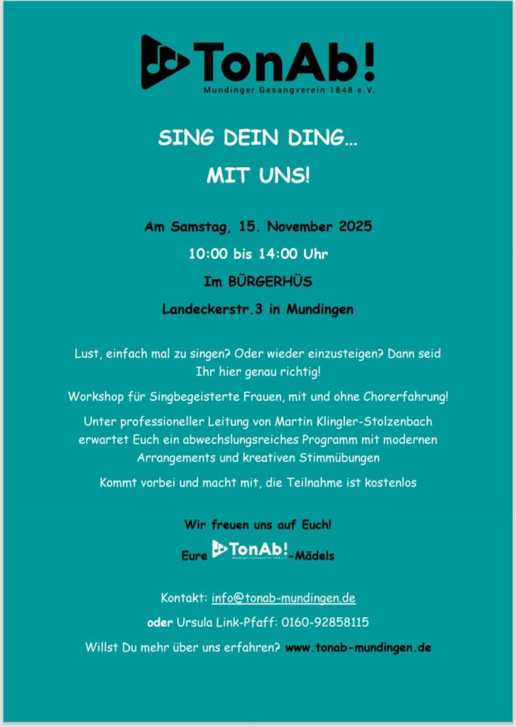 15.11.2025 Workshop von TonAb! für singbegeisterte Frauen im Bürgerhüs
